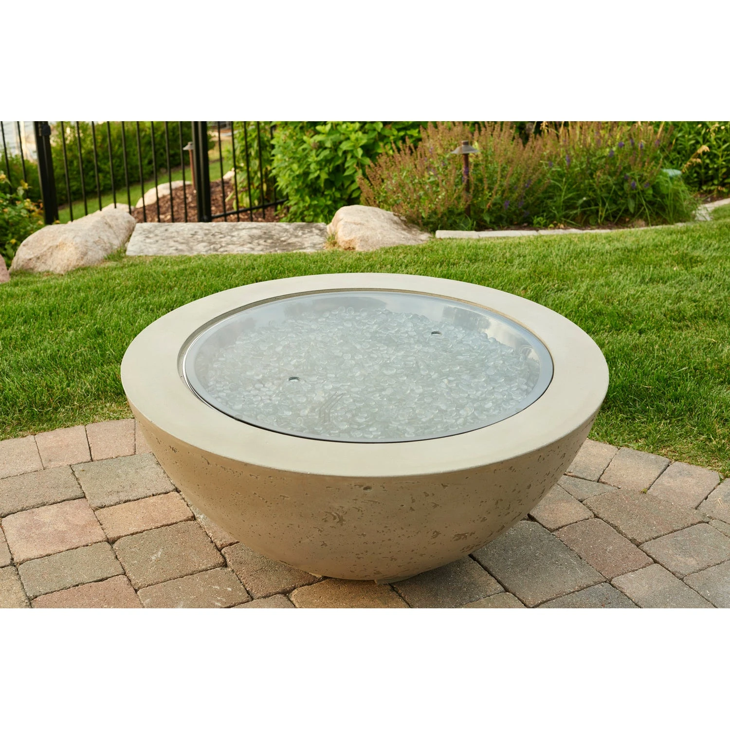- Grey glass burner covers included with most fire tables