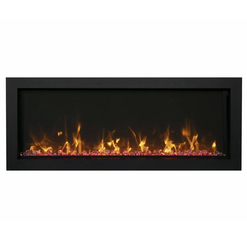 The Amantii BI EXTRA SLIM is a stylish electric fireplace that makes a stunning addition to any space – indoor or Outdoor. With an opening height of 11-7/8” and available in four sizes, you’ll find an EXTRA SLIM fireplace that is perfect for any space in your home, business, or commercial space. At just 4” in-depth, the BI EXTRA SLIM built-in electric fireplace series is perfectly suited to installations where wall depth is at a premium. The Extra Slim model comes standard with clear decorative media with additional media options available for purchase.
