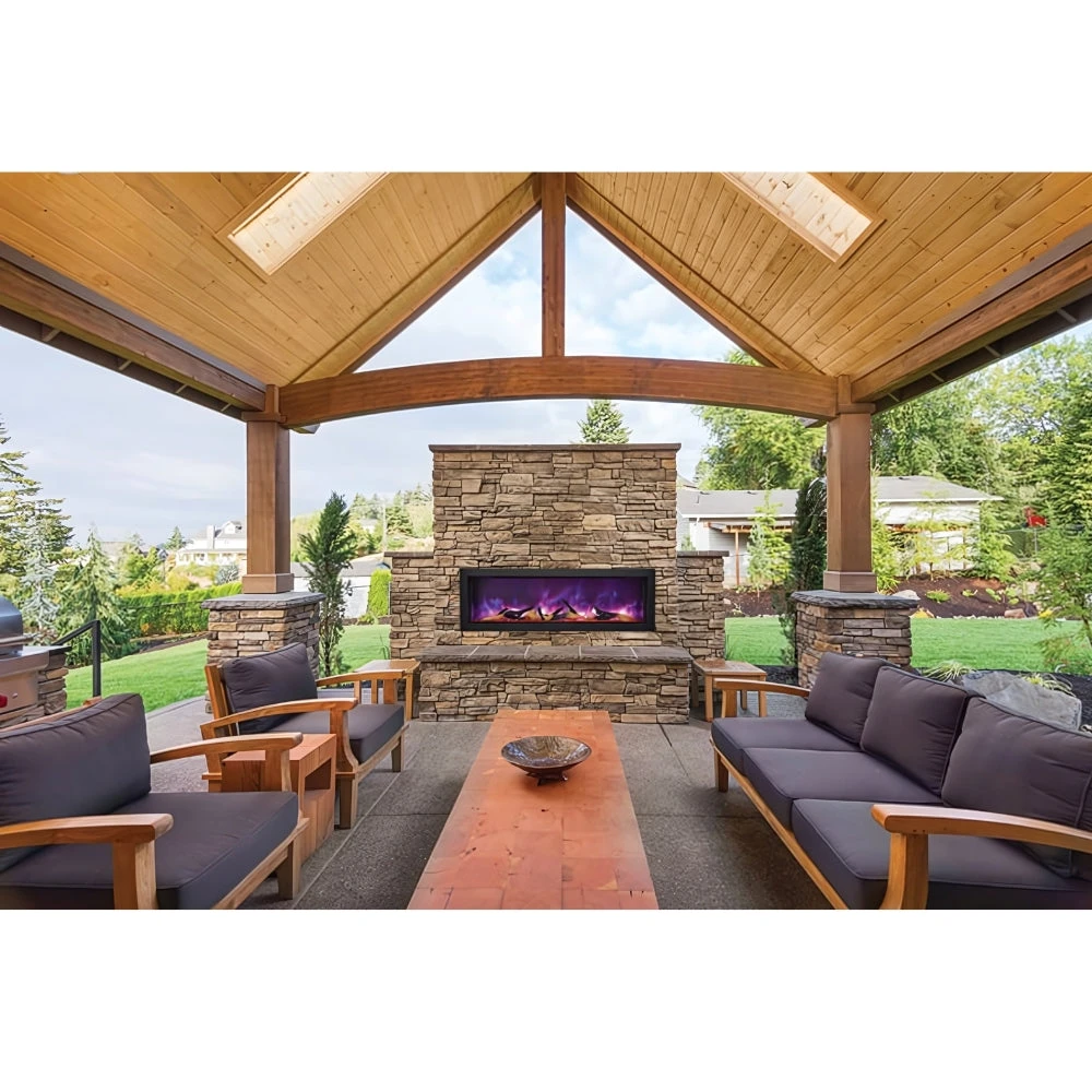 The Panorama series by Amantii Electric Fireplaces offers an exceptional full view viewing area, providing an immersive and captivating experience for users. This feature allows you to enjoy the realistic flames and glowing embers from a wider perspective, creating a stunning visual focal point in any room. The true trimless design of the Panorama series sets it apart from other built-in units in the market. With no visible trim or frame, the fireplace seamlessly blends into the surrounding wall, creating a sleek and modern appearance.