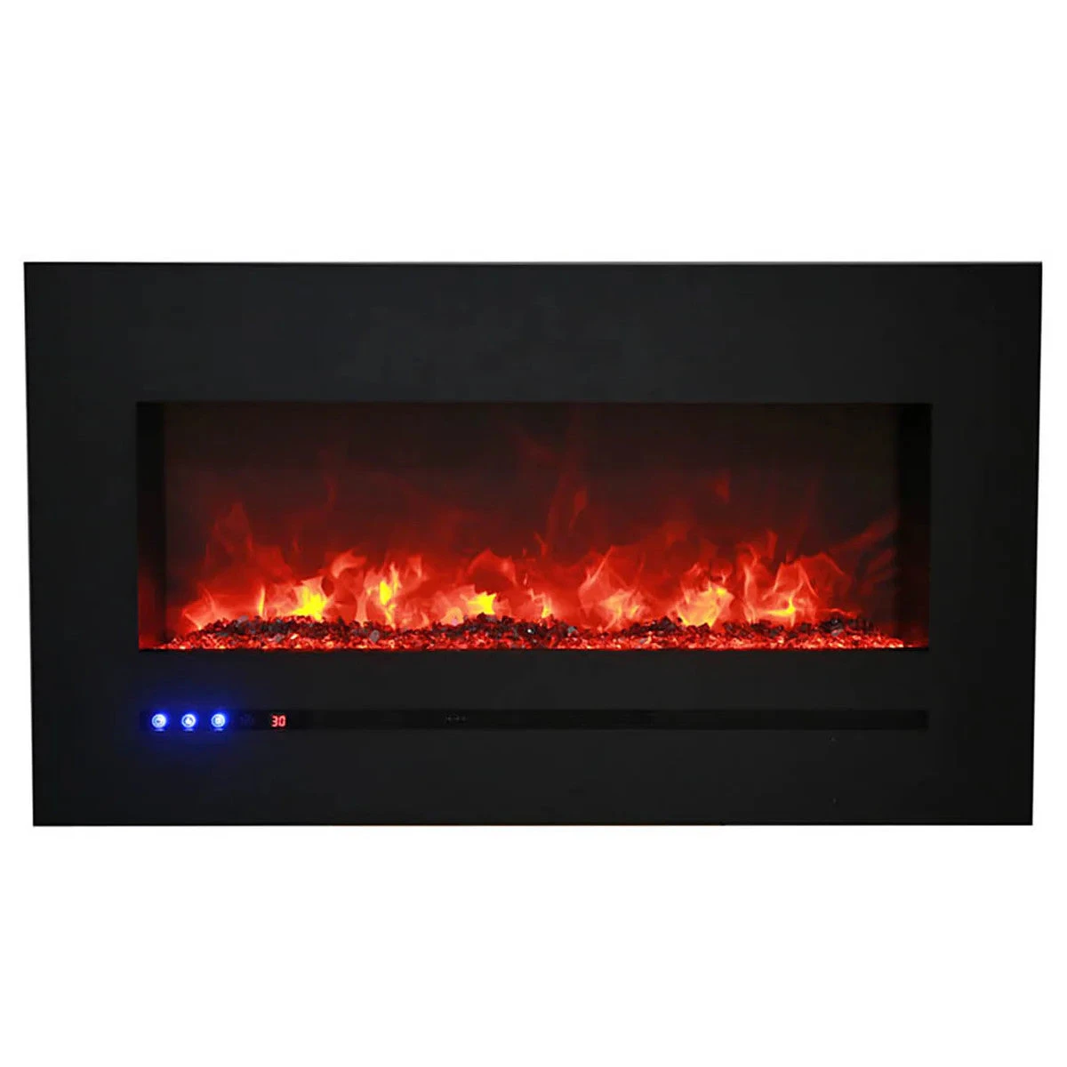 Heat is emitted through the face below the glass viewing area allowing for a flush mount installation and is the idea wall mount electric fireplace. If recessing is not an option, this model is also wall-mountable and perfect in apartments or in places where renovation or construction is not an option.