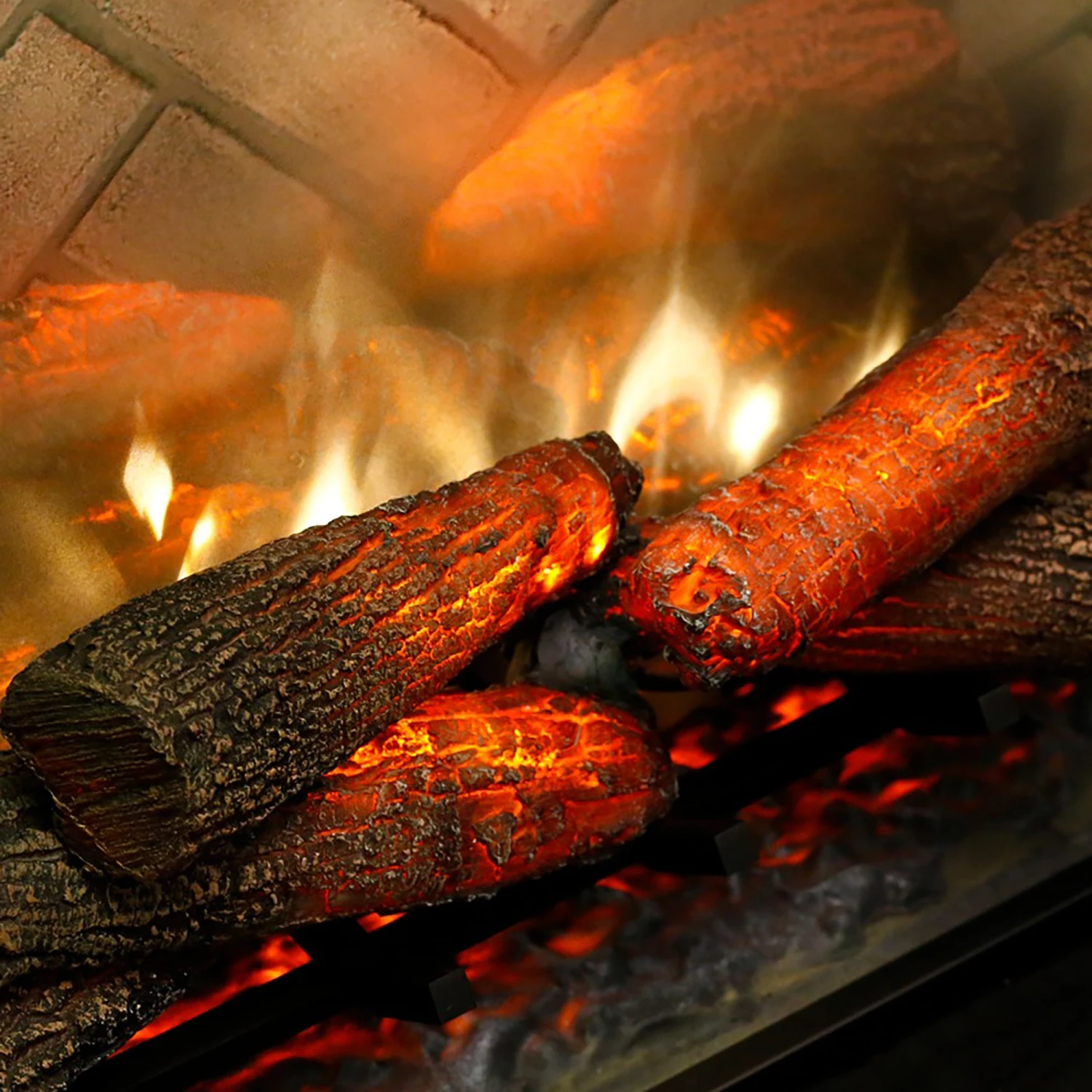 - A full grate of life-size hardwood-cast logs, tiered for greater depth