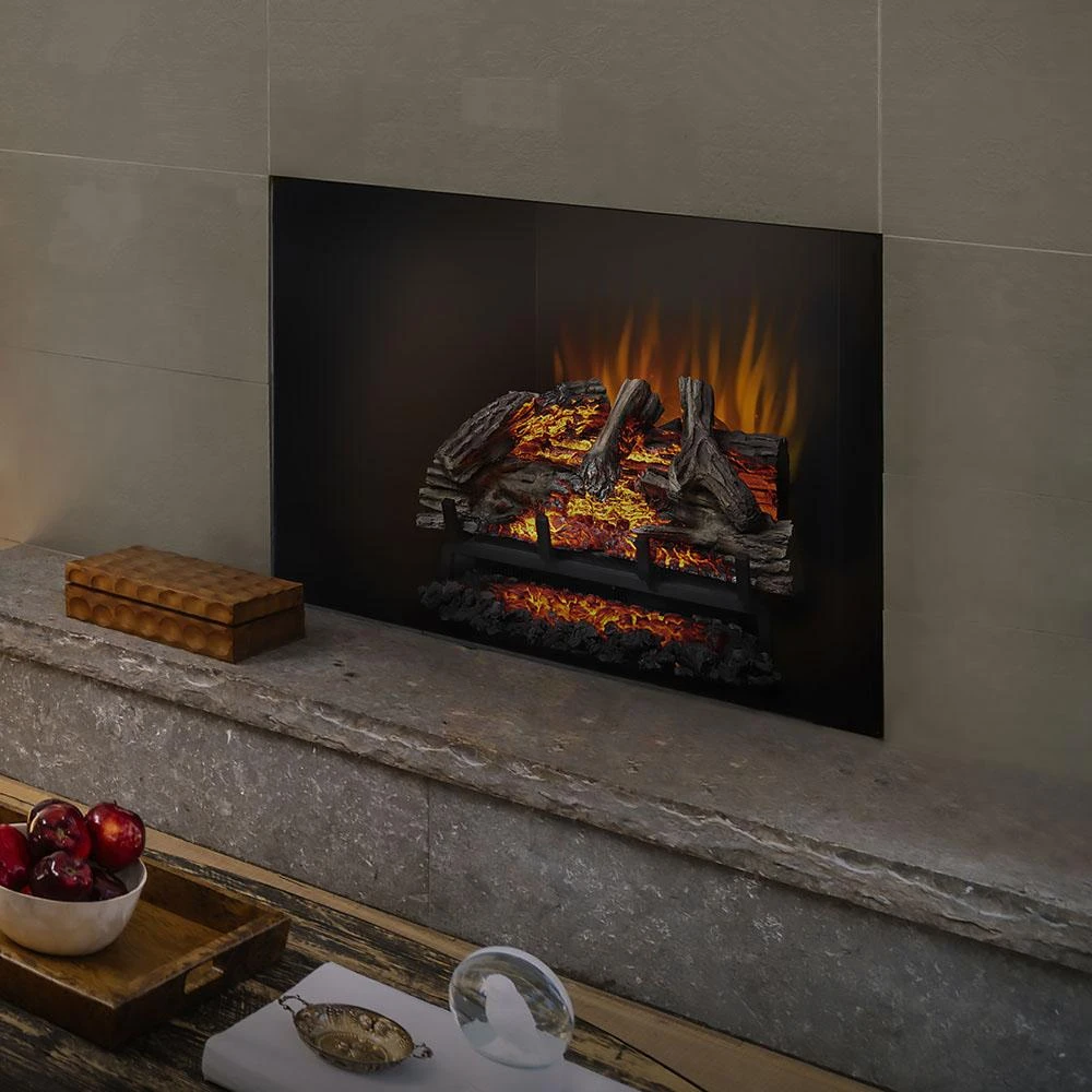 - High intensity LED lights provide an alluring flame show as well as realistic burning logs and glowing ember bed