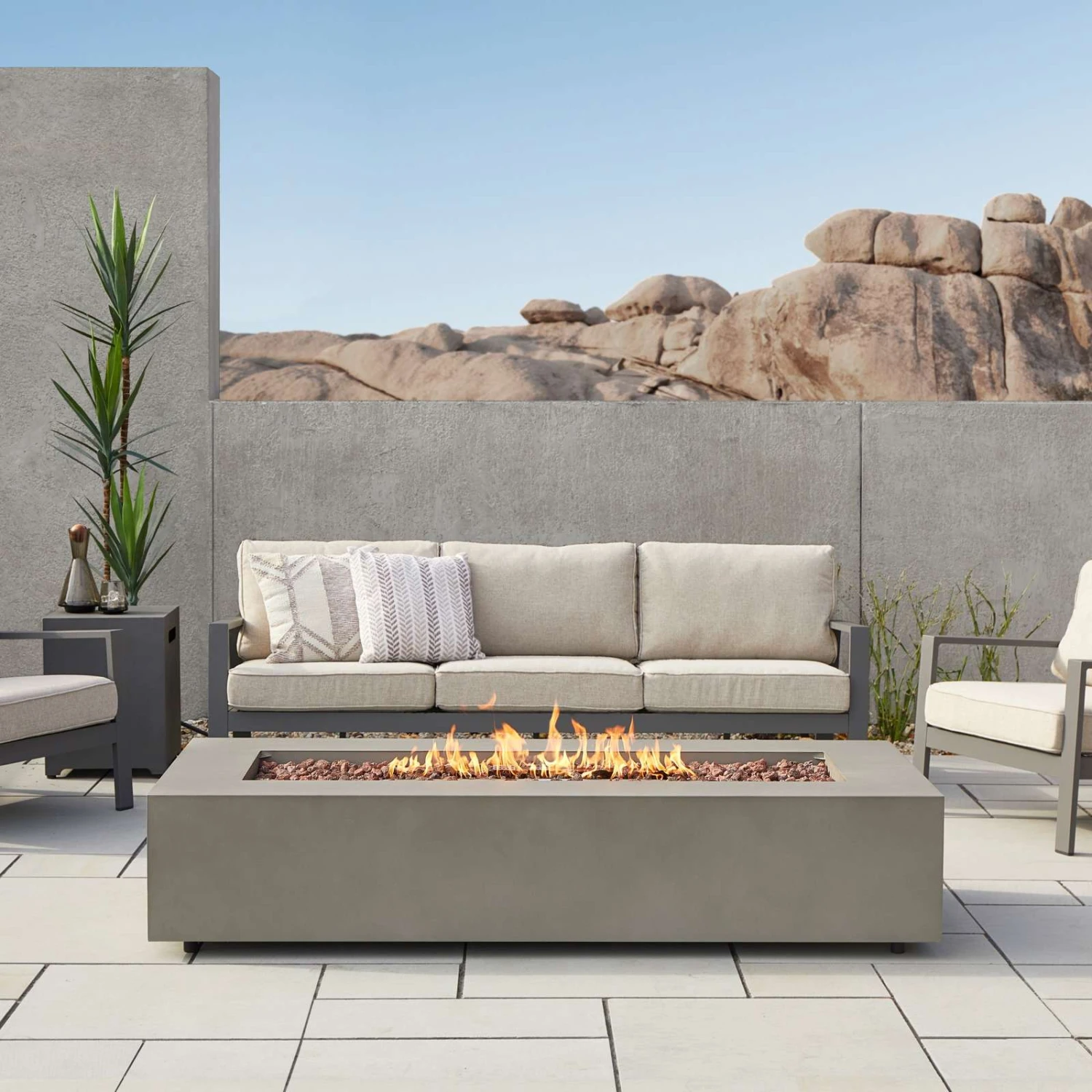 - Real Flame Aegean 70″ Rectangle Propane or Natural Gas Fire Pit Table