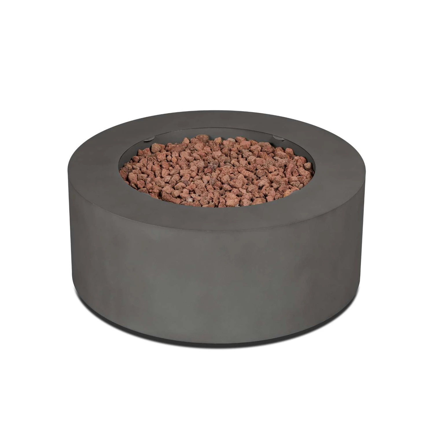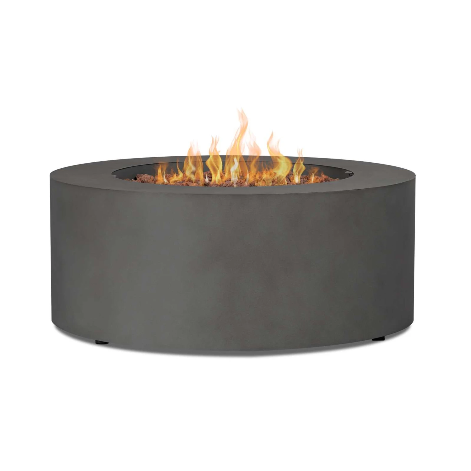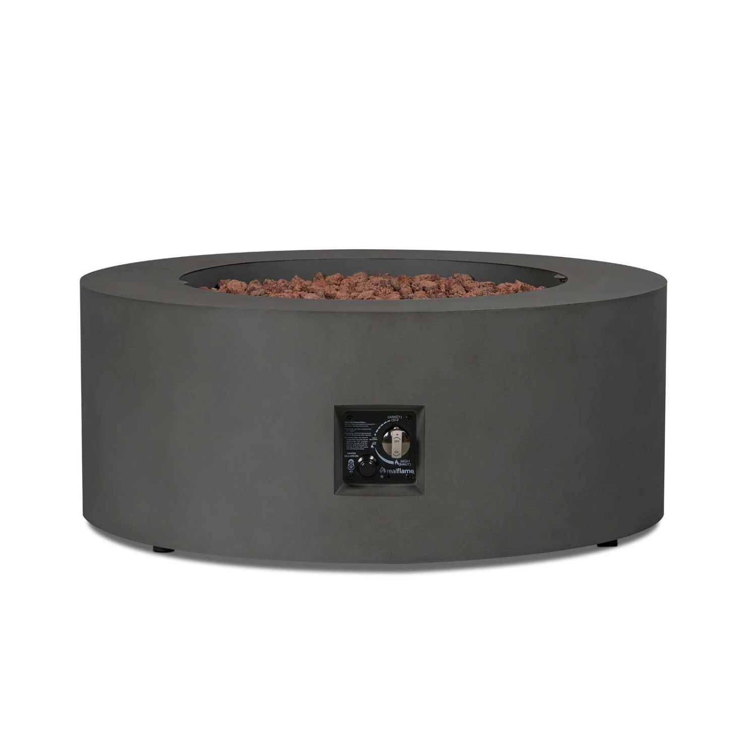 Make a stunning addition to your outdoor space with the clean, contemporary design of the Aegean round gas fire table. Made of durable steel with a lightly textured finish, this outdoor fire table features a reliable push-summary ignition and has adjustable flame height. Gas fire pit table with leveling feet, stainless steel burner, burner lid, lava rock, storage cover, propane hose with regulator and natural gas conversion kit are included. Providing 50,000 BTUs of heat, this outdoor propane fire pit can be converted to natural gas by a certified natural gas technician using the conversion kit. When not in use, transform this gas fireplace into a useful outdoor coffee table with the matching burner lid. Complete your patio set with the Aegean outdoor chair, loveseat, sofa and propane tank cover that doubles as a side table. Real Flame® gas fire pits are CSA certified and weather, sun and rust resistant.