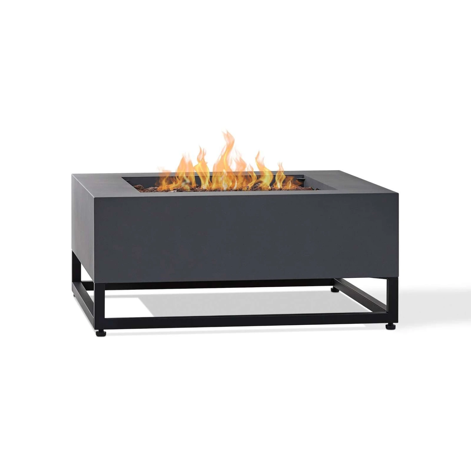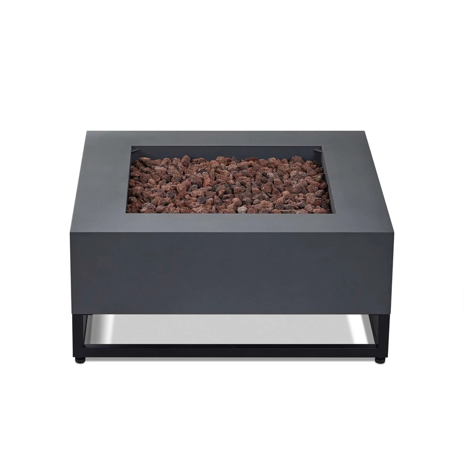 Transform your backyard or patio into a welcoming outdoor living space with the addition of the Blake square gas fire table. This durable, steel gas fire table has a refined style with a modern industrial edge that integrates well into many settings. Features a reliable push-summary ignition with adjustable flame height. Gas fire pit table with leveling feet, stainless steel burner, burner lid, lava rock, storage cover, touch-up paint, propane hose with regulator and natural gas conversion kit are included. Providing 50,000 BTUs of heat, this outdoor propane fire pit can be converted to natural gas by a certified natural gas technician using the conversion kit. When not in use, transform this gas fireplace into a useful outdoor coffee table with the burner lid. Complete the look with a matching propane tank cover that doubles as a side table, sold separately. Real Flame® gas fire pits are CSA certified and weather, sun and rust resistant.