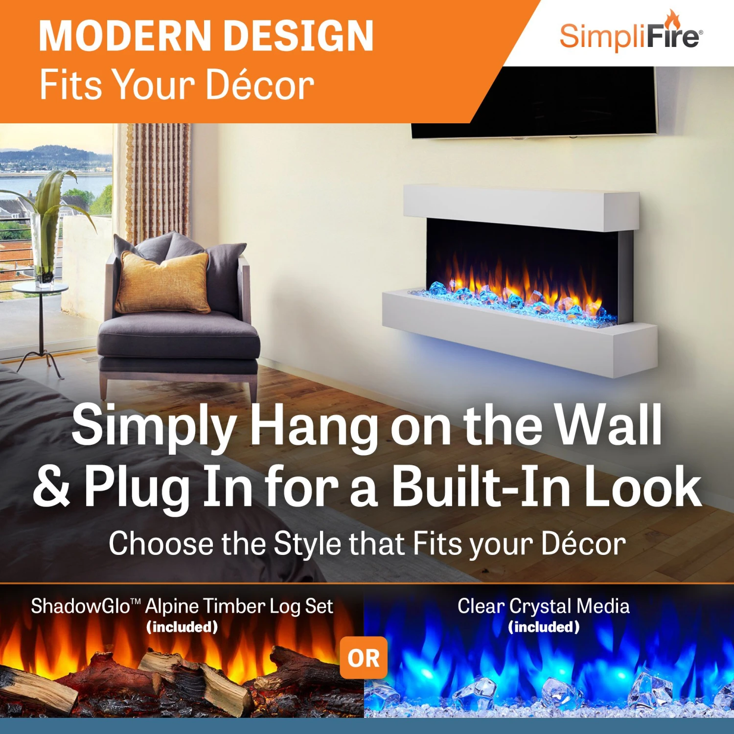 We all desire simplicity in everyday life. The SimpliFire Format wall-mounted electric fireplace is the easiest way to add a modern centerpiece to any space. The minimalist floating-mantel design, available in several lengths, fits your décor with multi-colored accent lighting to set the mood.