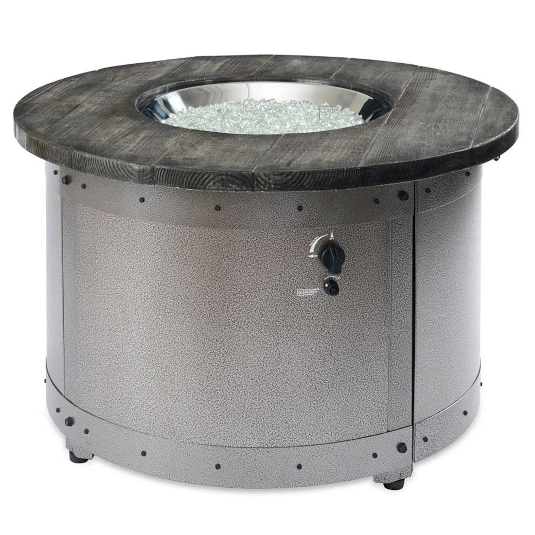 The Edison Gas Fire Pit Table combines industrial design with a unique, modern look. The powder-coated steel base accentuates the aged finish of the Weathered Grey Barnwood Supercast™ concrete top to create a beautiful statement in your outdoor room. Take in the warm, mesmerizing feel of the glowing fire as you relax or entertain guests. The Crystal Fire® Plus burner is UL listed for safety.