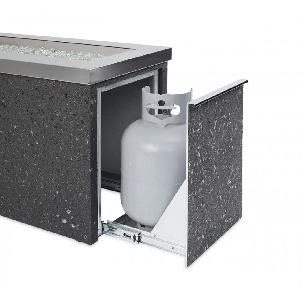 - Sliding Access Door conceals standard 20 lb. propane tank in base